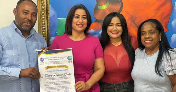 Santo Domingo, R.D. – En el marco del 9no aniversario de la Agencia de Prensa Mundial (APM), la destacada periodista y comunicadora Yenny Polanco Lovera fue reconocida por su valiosa trayectoria y significativos aportes al periodismo turístico en la República Dominicana.